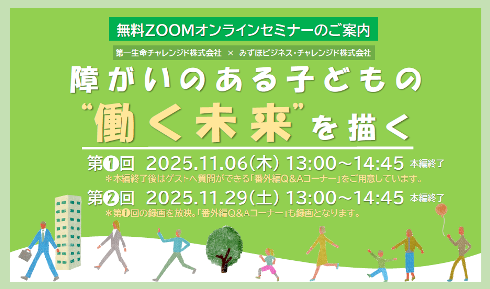 <個人向け>障がいのある子どもの”働く未来”を描く(ゲスト:第一生命チャレンジド(株)、みずほビジネス・チャレンジド(株))