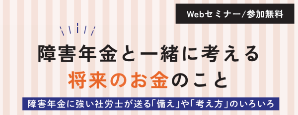 弊社では、2026年3月5日、6月6日に、Zoomオンラインセミナー「障害年金と一緒に考える、将来のお金のこと」を開催します。